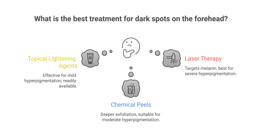 What is the safest approach to removing dark spots from my forehead?